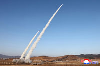 朝鮮ミサイル総局が行った新型大口径ロケット砲の試射=2026.1.27